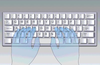 De vingers blijven dus steeds in de uitgangspositie, dus op de f en j.